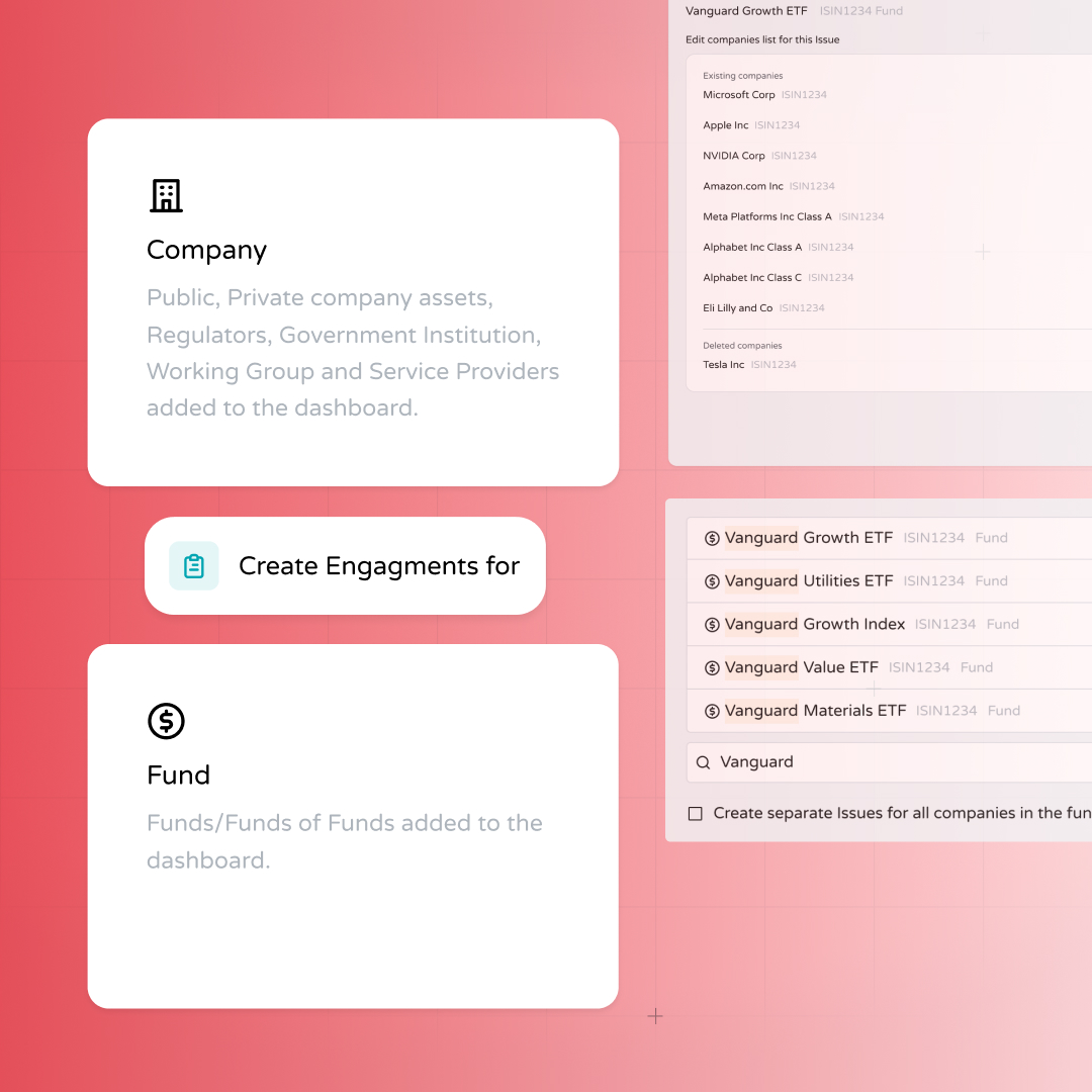 We’ve enhanced the Engagement Tracker to provide deeper visibility into stewardship activities across your investment structure. With this new feature, you can now: Create and track issues at the fund level enabling you to capture thematic or strategy-wide stewardship objectives.